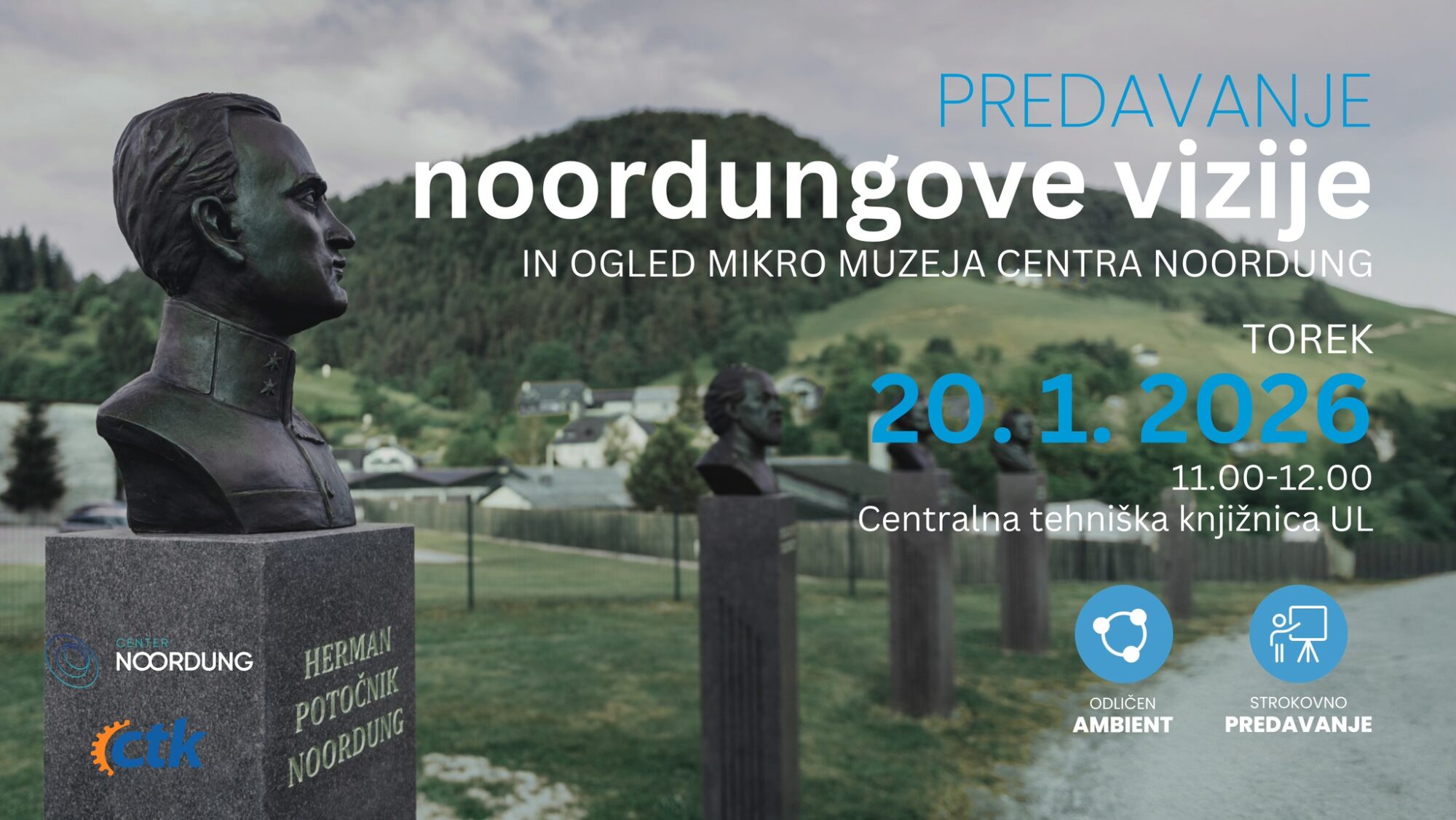 Kako je Slovenec že pred več kot 100 leti razmišljal o vesolju, kot ga poznamo danes? Vabljeni na zanimivo in poljudno predavanje, kjer bomo skupaj odkrivali vizije Hermana Potočnika Noordunga, pionirja astronavtike, ki je s svojimi idejami prehitel čas. Spoznali boste, kako je nastala ideja vesoljske postaje, koncept umetne gravitacije in pogoji na mednarodni vesoljski postaji danes ter kako so Noordungove zamisli vplivale na sodobne vesoljske misije.